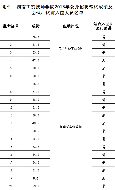 根据《开云(中国)官方网站2015年公开招聘工作人员公告》要求,通过公开报名和资格审查,于2015年12月6日举行了电子商务专业教师岗位和机电类实训教师岗位的笔试考试,阅卷工作已结束。现将笔试成绩及上述两个岗位的面试、试讲入围名单予以公示(见附件),接受社会监督。如有异议,请在公示期(12月9日—12月11日)内实名书面反映,反映人必须用真实姓名,反映情况要实事求是,真实、具体、敢于负责。